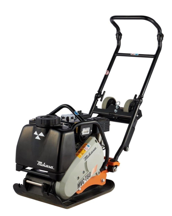 Mikasa MVC-T60 är en smidig vibratorplatta med vattentank och integrerat hjulställ. Den är särskilt framtagen för packning av grus och asfalt. Med låg vikt och hög prestanda är Mikasa MVC-T60 ett pålitligt val för mindre och trånga ytor där precision och kontroll är viktigt. De mjukt uppbockade kanterna på bottenplattan gör MVC-F60 mycket lämpad för asfaltarbeten då den inte lämnar spår i den varma massan.